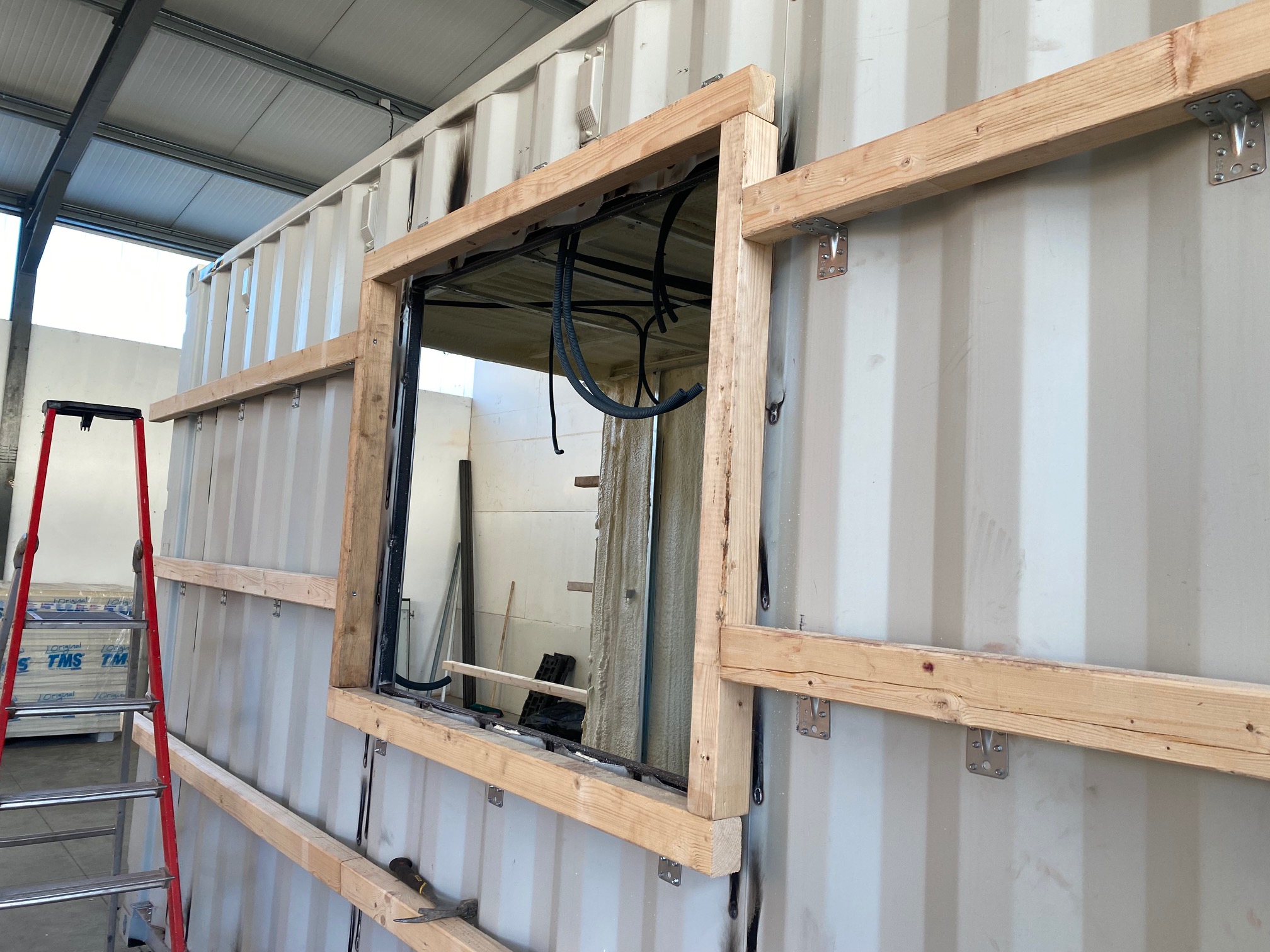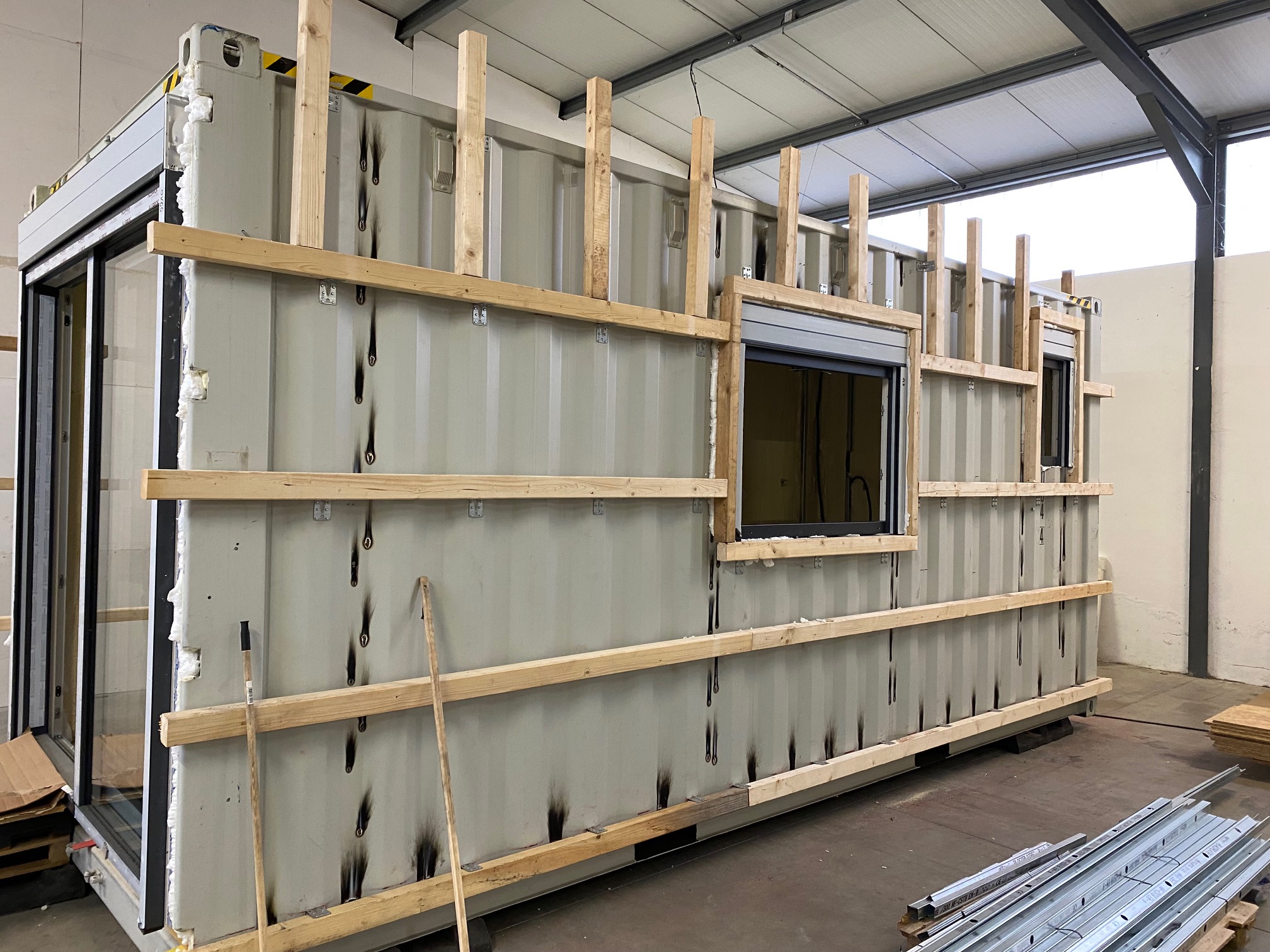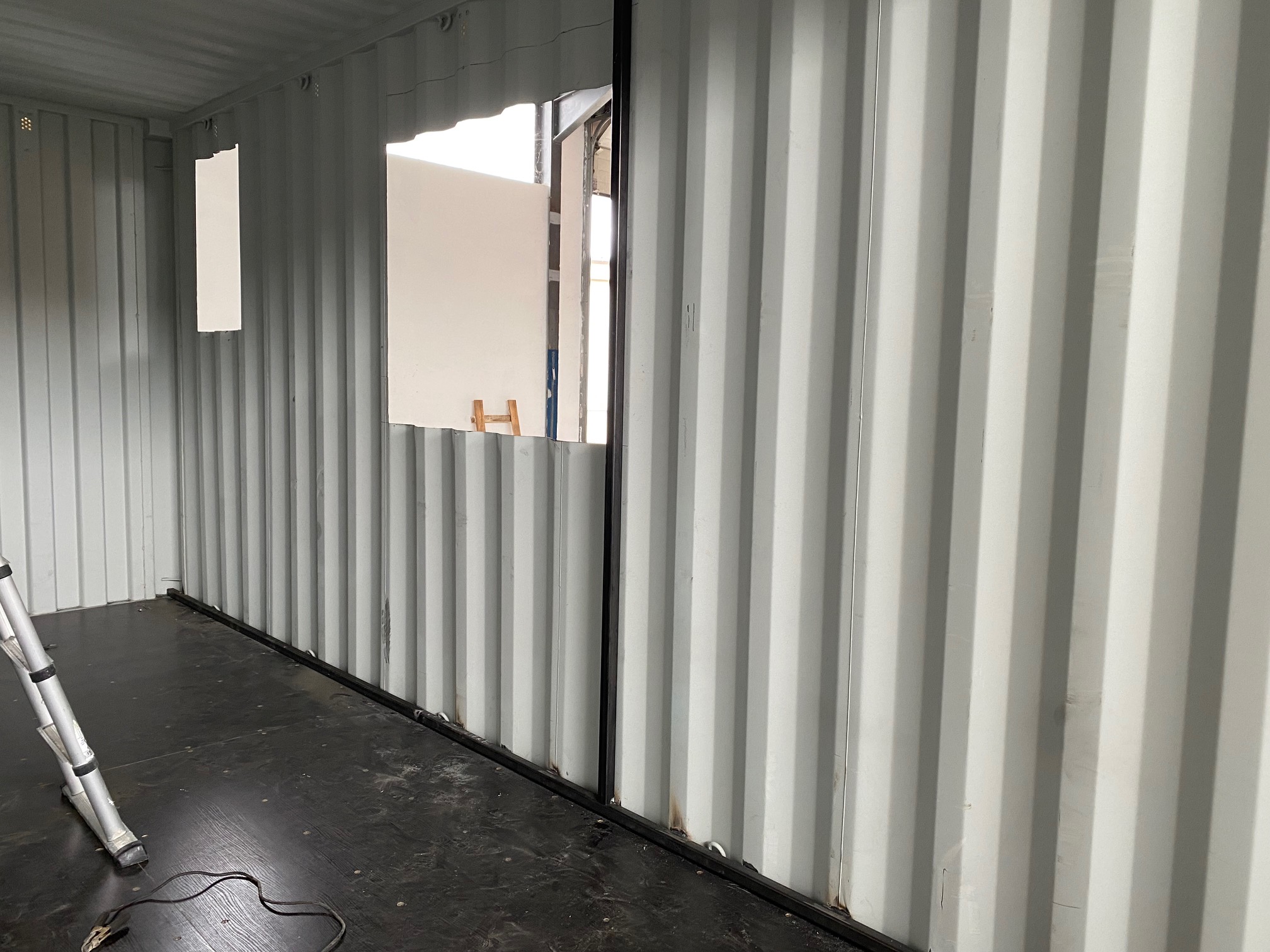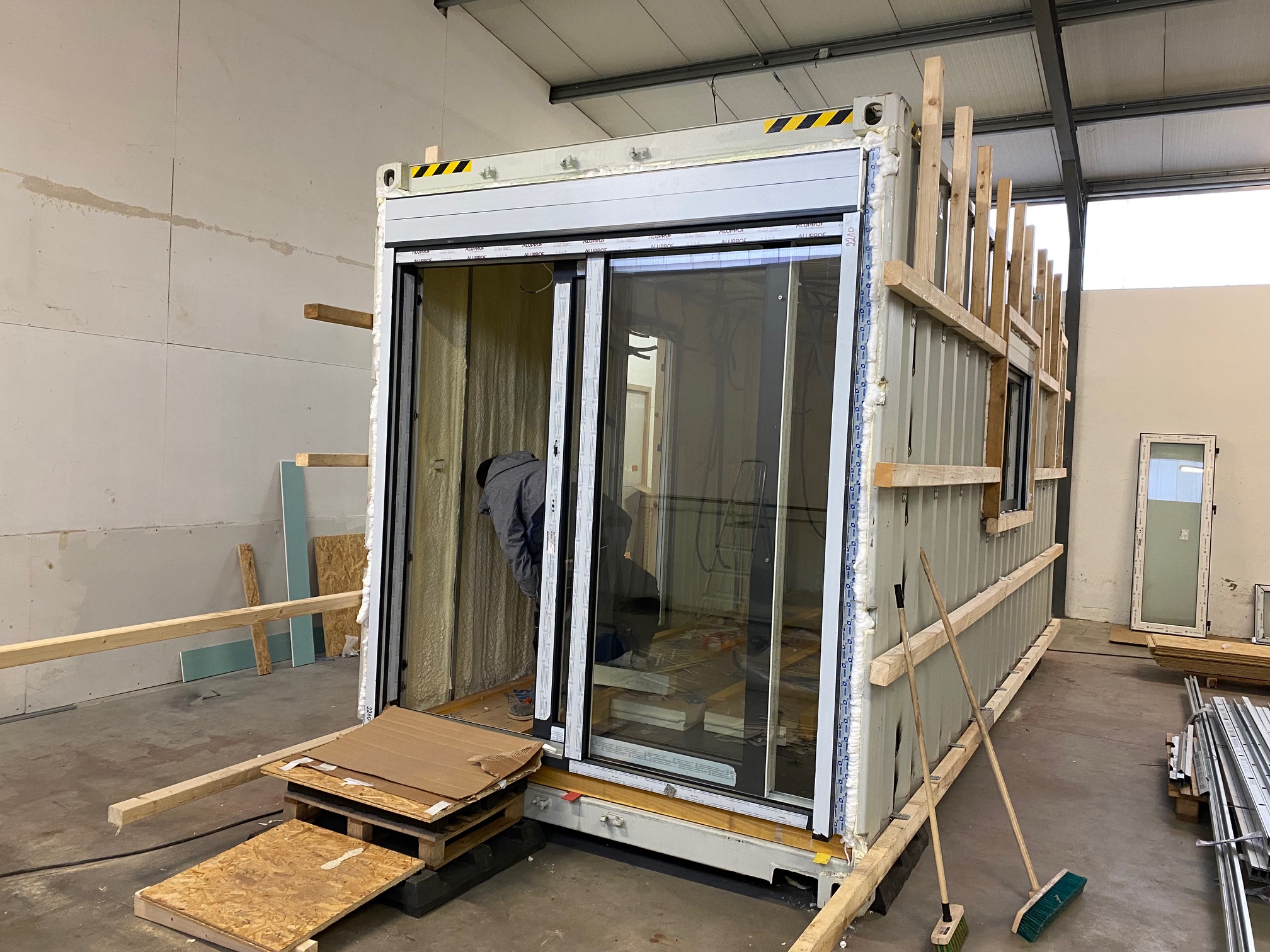 Ajout de la collerette pour assurer l’étanchéité et la finition autour du conteneur.