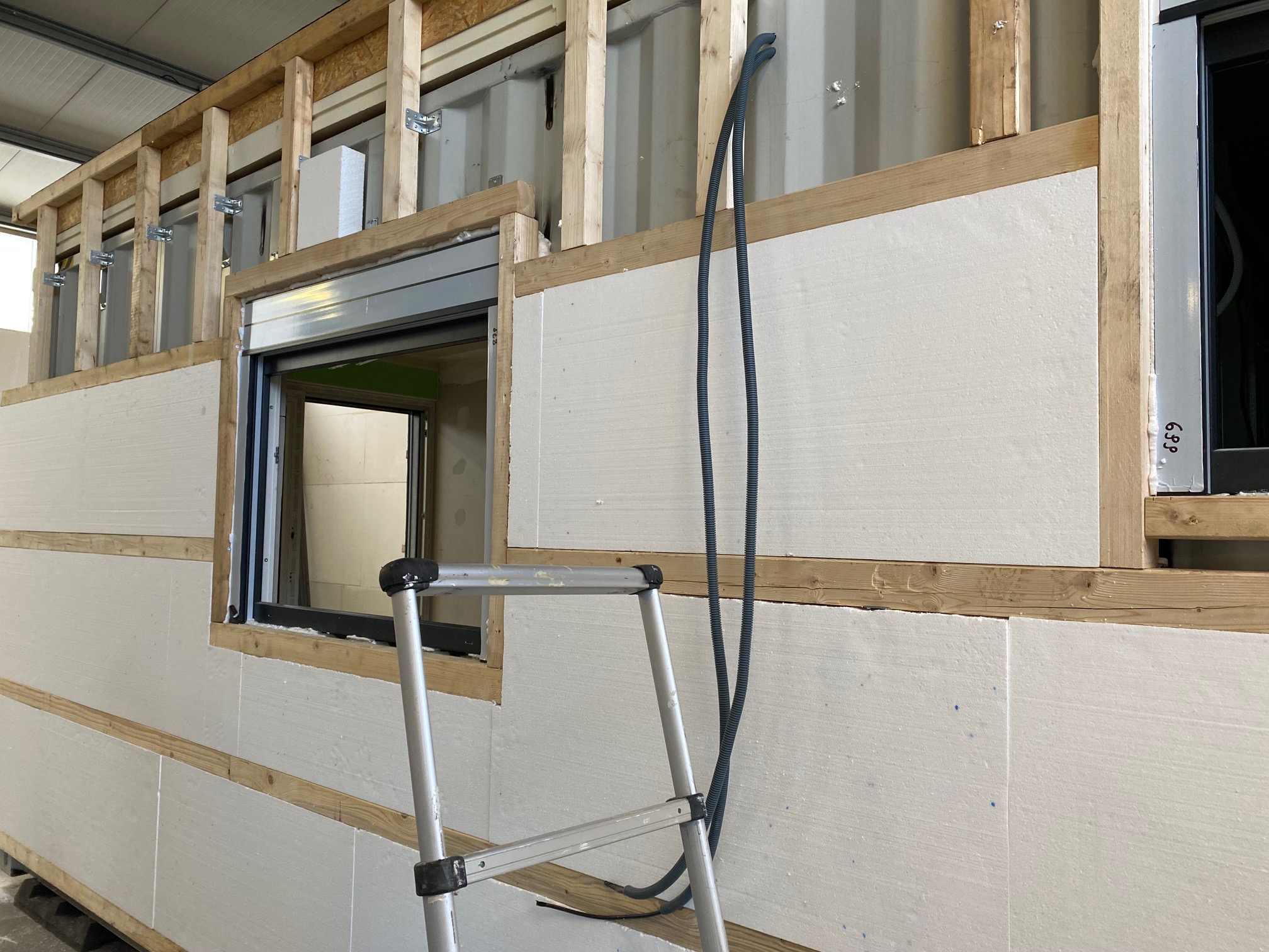 Installation de l’ossature destinée à accueillir le revêtement extérieur.