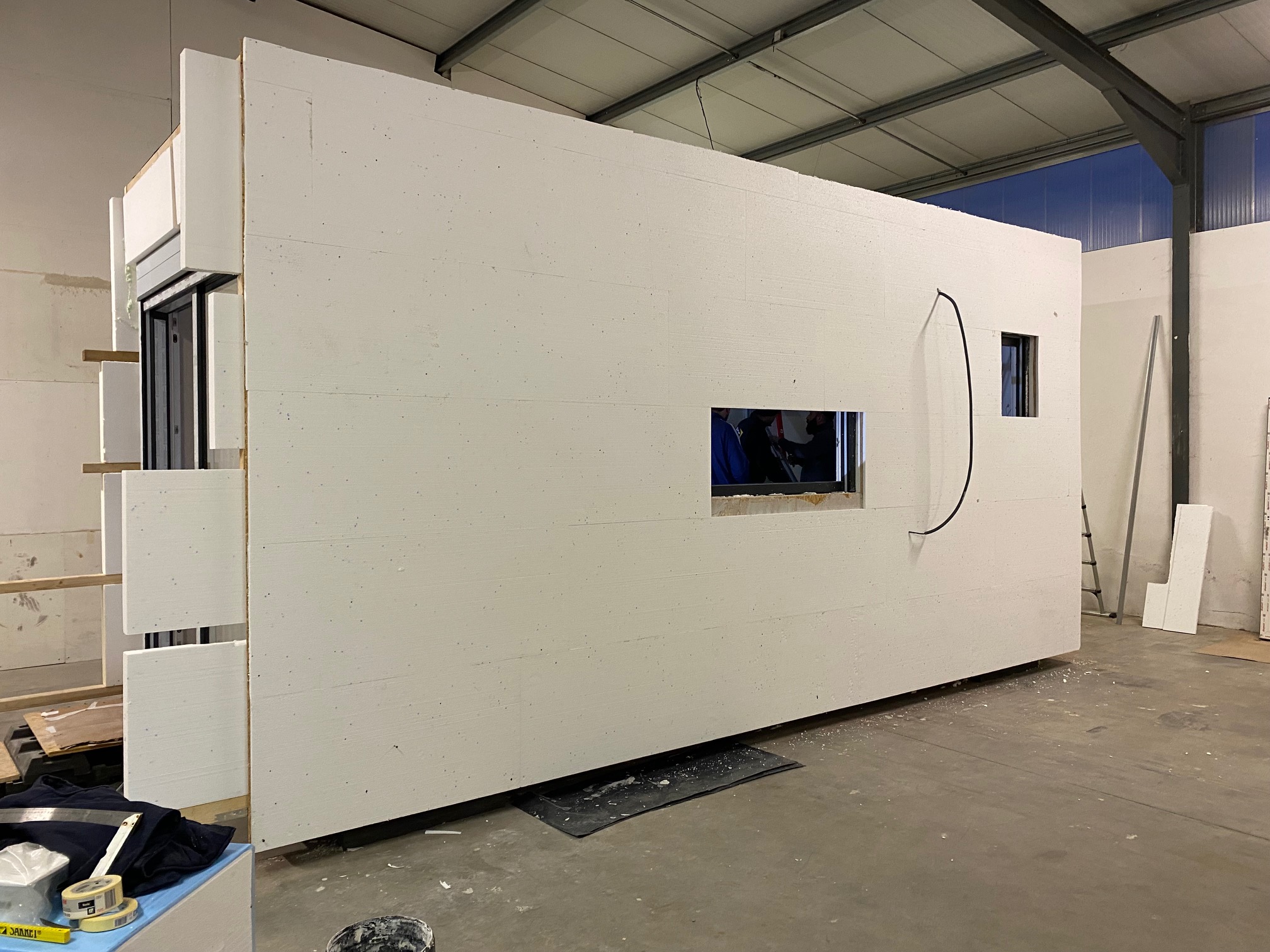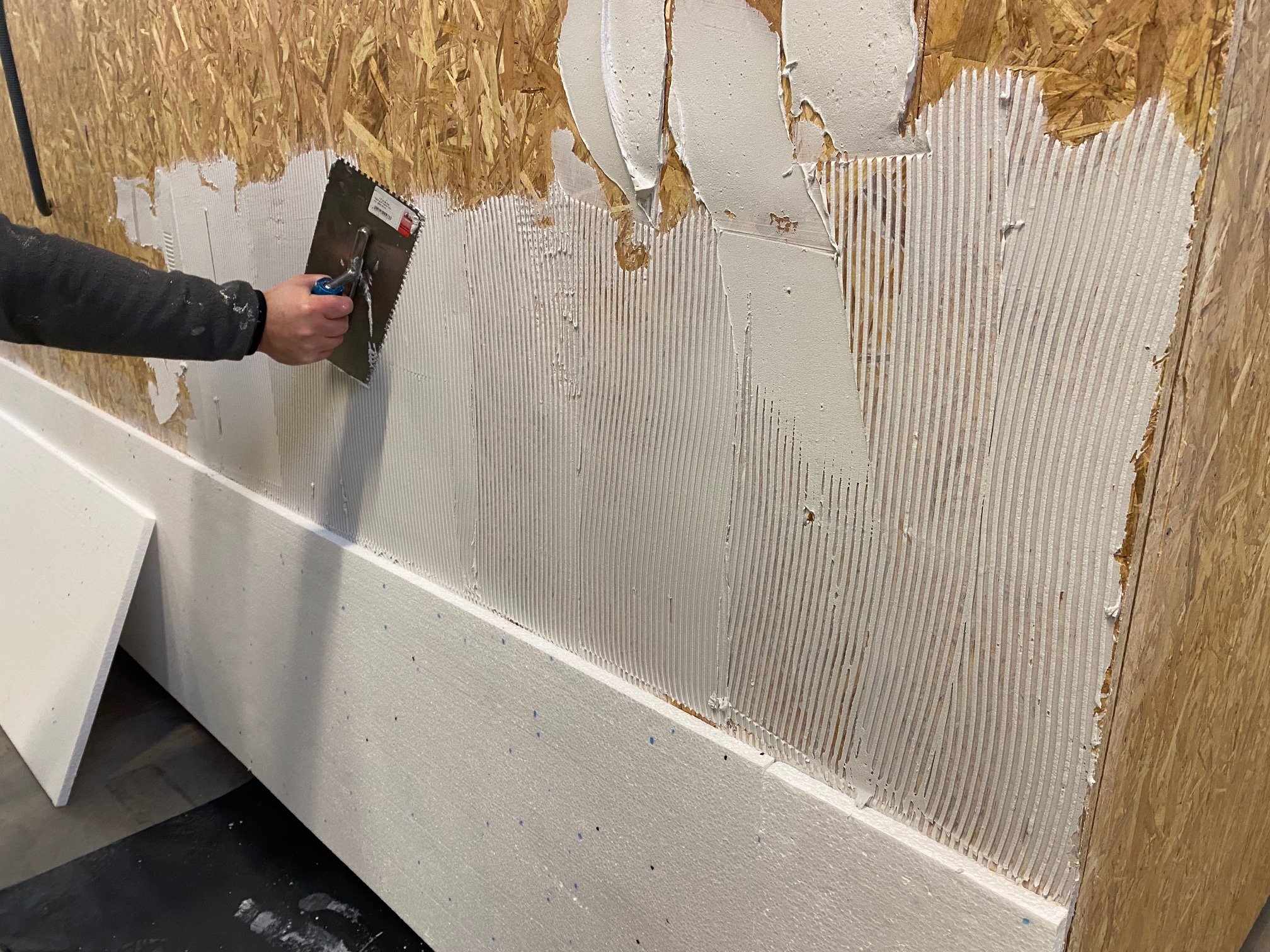 Habillage intérieur avec du placo, suivi de l’application d’un enduit de finition.